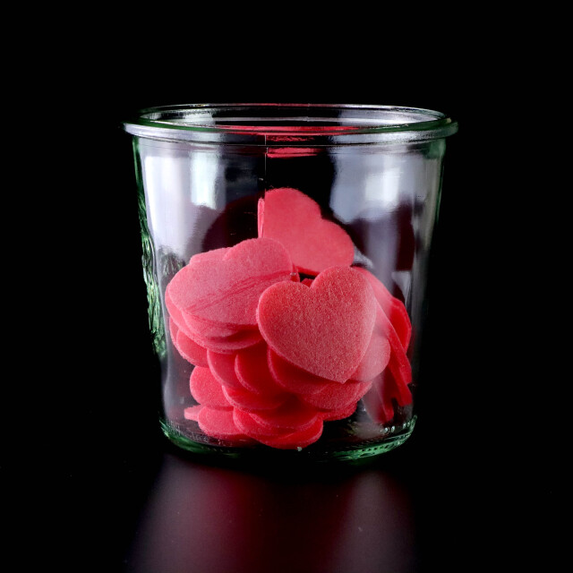 ハート型にカットし、色は濃い赤色にすることで「真実の愛」や「情熱」を表現しました。